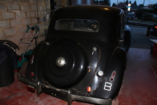 La voiture est dans un très beau jus, saine à première vue. Elle est vraiment complète, et doit dater de fin 1949, car elle n'a plus le compteur noir. Mais tous les accessoires, jantes Lambert-Nivelles, phares Willocq-Bottin, flèches de direction - placées à l'arrière comme sur mon ex 11B50, rétroviseur avec sa patte en alu etc., sont présents. Elle redonne même des envies de traction à Martin !