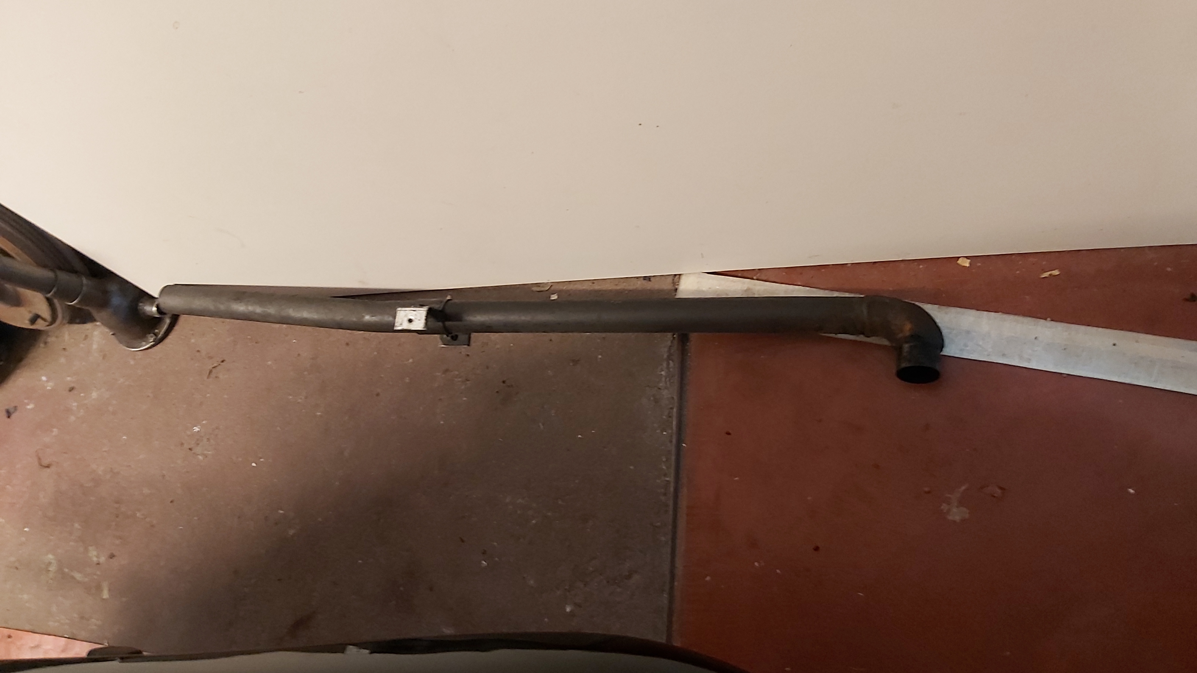 Il faut maintenant démonter la dernière durite allant du tuyau rigide courbe sous l'aile jusqu'au réservoir, mais sur un cab les trappes d'accès au réservoir, présentes dans le coffre des berlines, sont condamnées puisqu'il n'y a pas de coffre ici. Pas d'autre solution que de déposer le réservoir, et pour cela d'abord démonter le dernier tronçon du tuyau d'échappement :