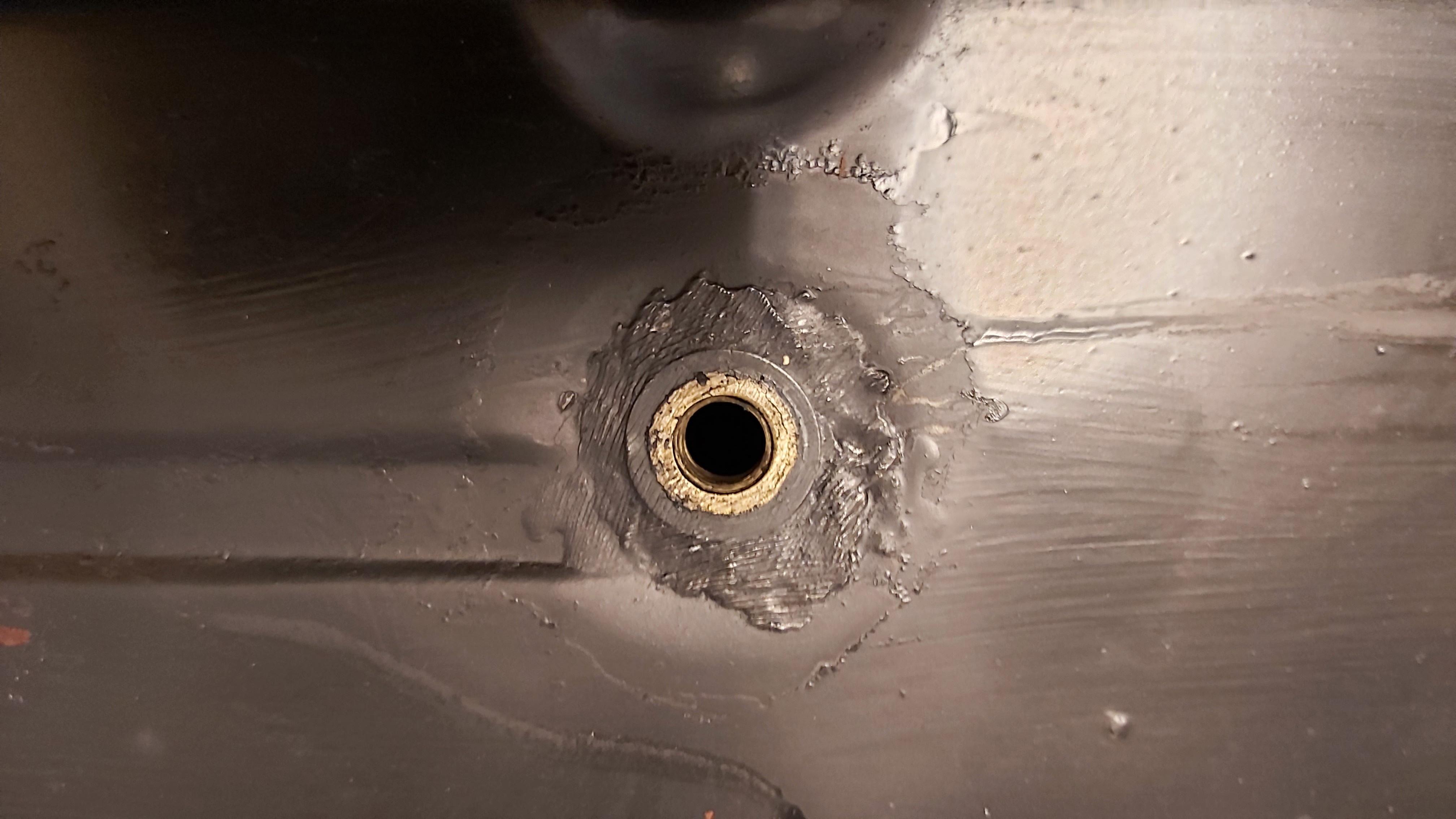 Le réservoir étant vide et sec (et propre !), j'obture tous les trous et passe l'aspirateur industriel dont le tube a exactement le diamètre du trou de la jauge. L'intérieur semble correct, pas de trace (visible) de poussière de rouille ni d'oxydation ...