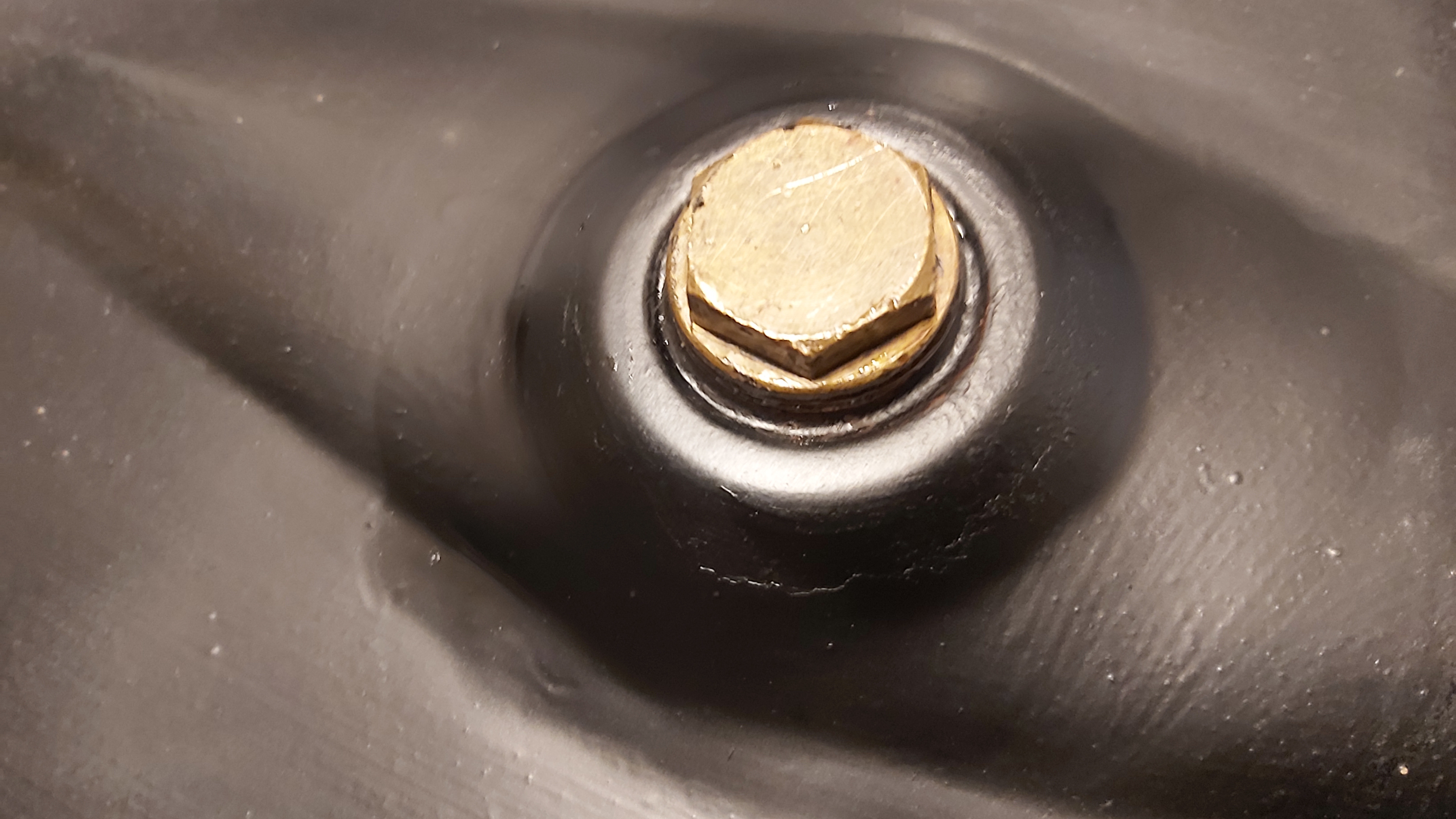 Démontage du bouchon de vidange avec son "filtre" (à cailloux ?) :