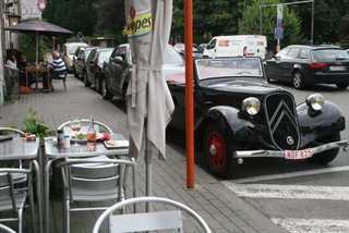 J'essaie de remettre un peu d'ordre dans le garage aujourd'hui, je rince l'aspirateur industriel qui m'a permis (avec un produit à ne pas mettre entre toutes les mains, mélange d'HCl et d'H2SO4) de déboucher les tuyauteries de la maison, et qui vois-je passer devant le garage ? Alain 11al. Super, on va aller boire un verre ensemble . Comme il fait beau, nous laissons sa magnifique 11AL devant la maison , et nous prenons le cab. Et comme il a des "obligations familiales" à midi, nous n'allons pas très loin, simplement Tervueren. La météo annoncée n'est pas toujours fiable