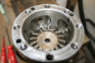 . Si les amorces de ces rainures sont insuffisantes c'est peine perdue ! On pousse ensuite à fond la couronne, et les billes rentrent sagement chez elles ... Il faut ensuite présenter ce montage sur le "vrai" moyeu de synchro
